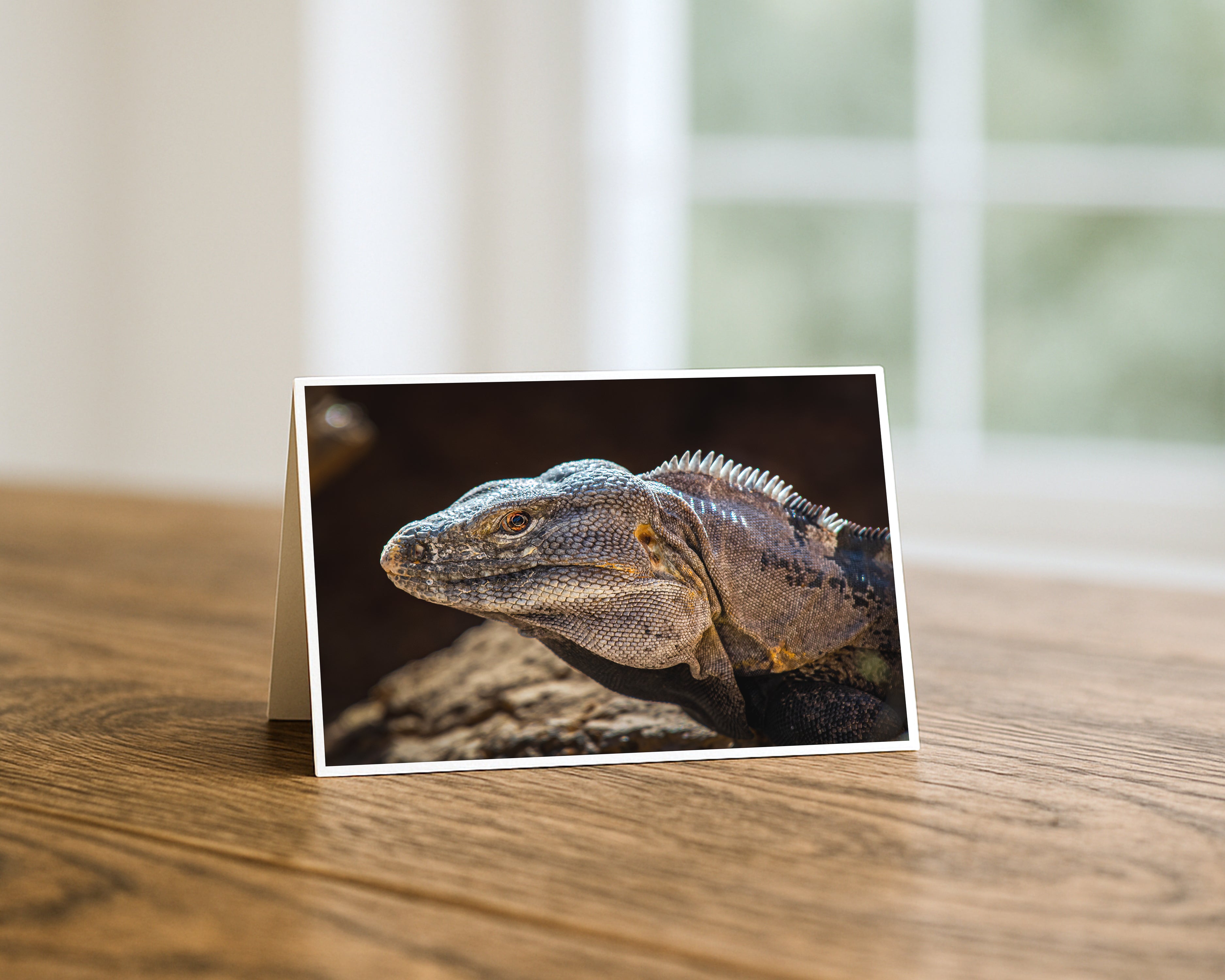 This 5x7 greeting card is a bold, one-of-a-kind choice for wildlife lovers, reptile enthusiasts, or anyone who appreciates nature's more extraordinary faces. Printed on archival glossy paper, the rich textures and earthy tones of this fine art photograph come to life with exceptional clarity.