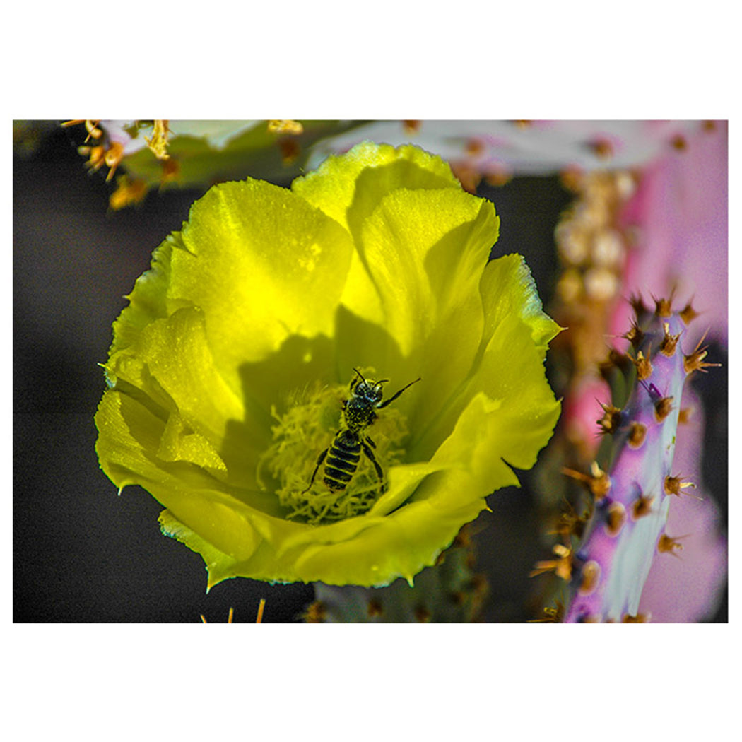Yellow Cactus Flower with Bee Fine Art Photography Greeting Card (5 X 7)